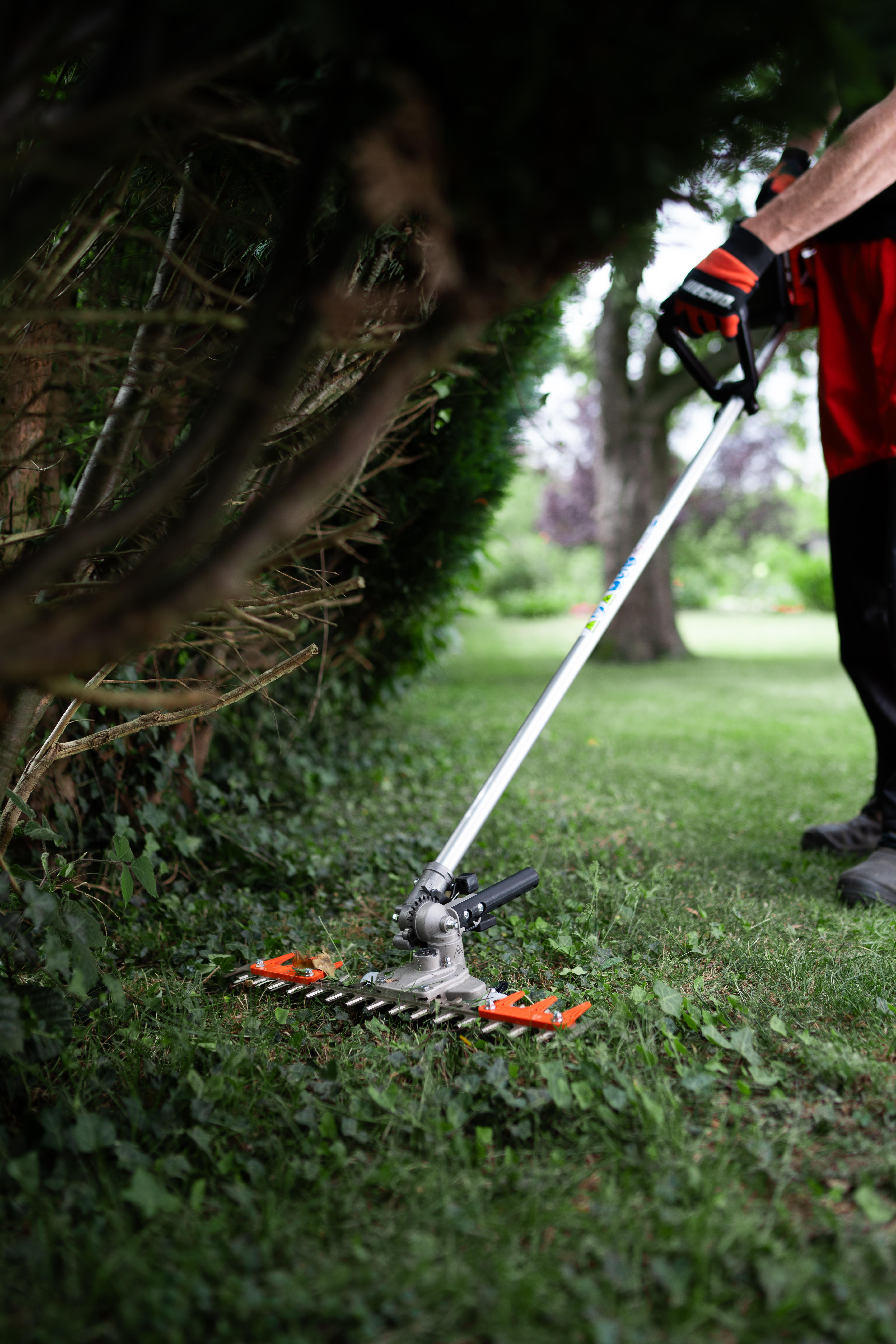 Der ECHO Akku Balkenmäher DTT-2100 ist die nächste Revolution für das schleuderfreie und ökologische Mähen von Grünflächen. Der Mähbalken mit einer Schnittbreite von 46,4 cm ist ideal für das Mähen von Gras, Schneiden von Hecken, Schilf etc. Die Schnittleistung ist dabei um ein vielfaches höher wie bei einer Kreiselschere. Durch Kufen und Rollen unterhalb des Messerbalkens ist eine hervorragende Manövrierbarkeit auf allen Untergründen gewährleistet. Der Winkel des Messerbalkens lässt sich vierstufig zwischen 0, 15, 30 und 45 Grad verstellen. Die Auto Boost Funktion passt die Schnittgeschwindigkeit für eine optimale Leistung an die Last an, wodurch sich etwa 100 m² Gras in 10 Minuten mähen lassen. Durch die innovative Klinge schneidet die DTT bei der vorwärts- und Rückwärtsbewegung des Messerbalkens. Die DTT-2100 stellt somit eine flexible, sichere Lösung für das Mähen von sensiblen Bereichen dar. Der Messerbalken lässt sich mit nur zwei Schrauben entfernen, was den Tausch des Balkens für super einfach macht. Die verschiedenen Einsatzzwecke möchten wir dir noch einmal näher bringen:
