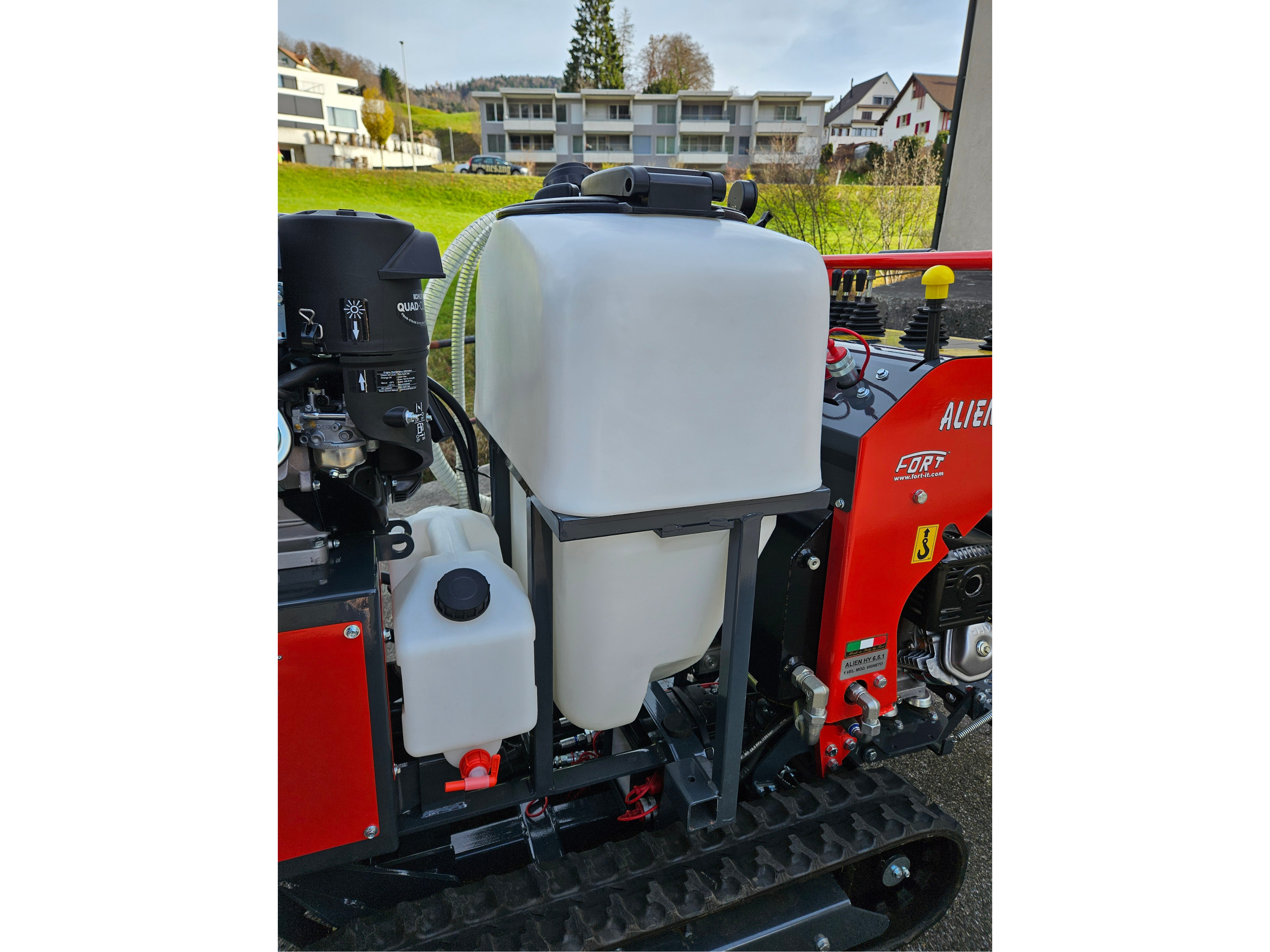 FORT Raupentransporter Grundgerät ALIEN HY 6.5.1, Honda GX390 mit ONE SPEED Version, 4.2km/h inkl. Vertikalzerstäuber 105L mit Kohler CH395 Motor und Trittbrett (nur im Set erhältlich)