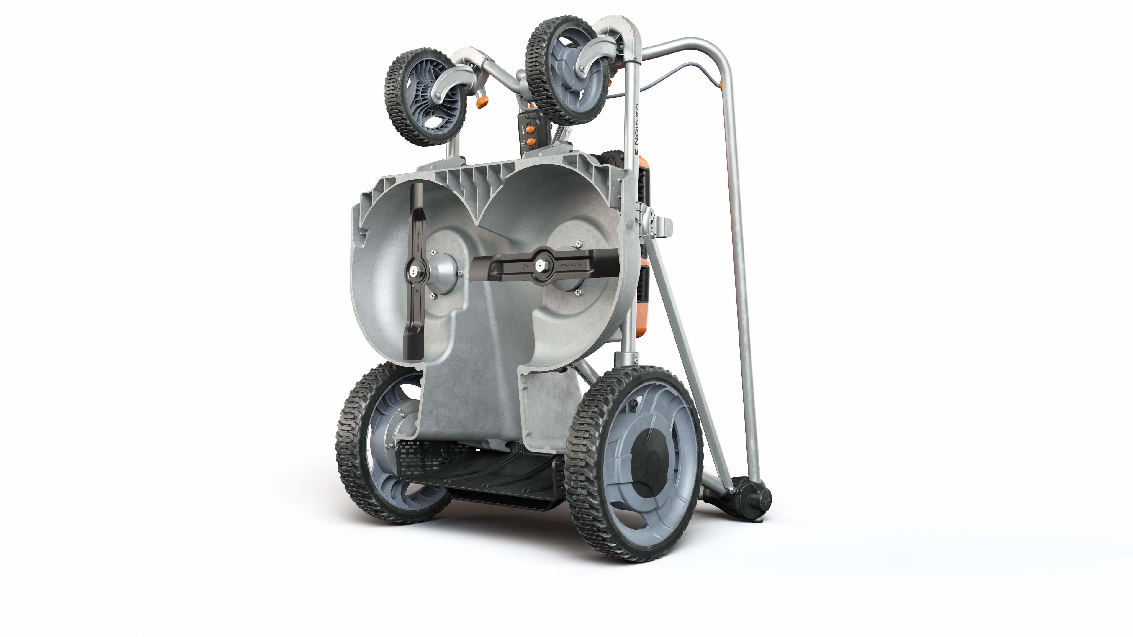 La tondeuse professionnelle RASION 2 SMART, très légère grâce à son plateau de coupe en aluminium et très maniable avec ses deux roues avant pivotantes, assure une coupe de gazon de haute précision grâce à ses doubles lames contrarotatives. Grâce à la résolution automatique des bourrages d’herbe et en combinaison avec la batterie lithium-ion recommandée ULiB 1500, une tonte ininterrompue jusqu’à cinq heures* est possible. De plus, le fonctionnement silencieux ne dérange pas les voisins. Équipée en série du Intelligent Cutting Control (ICC, détection de la densité de la végétation pour ajuster la vitesse de rotation des lames = prolongation de l’autonomie).