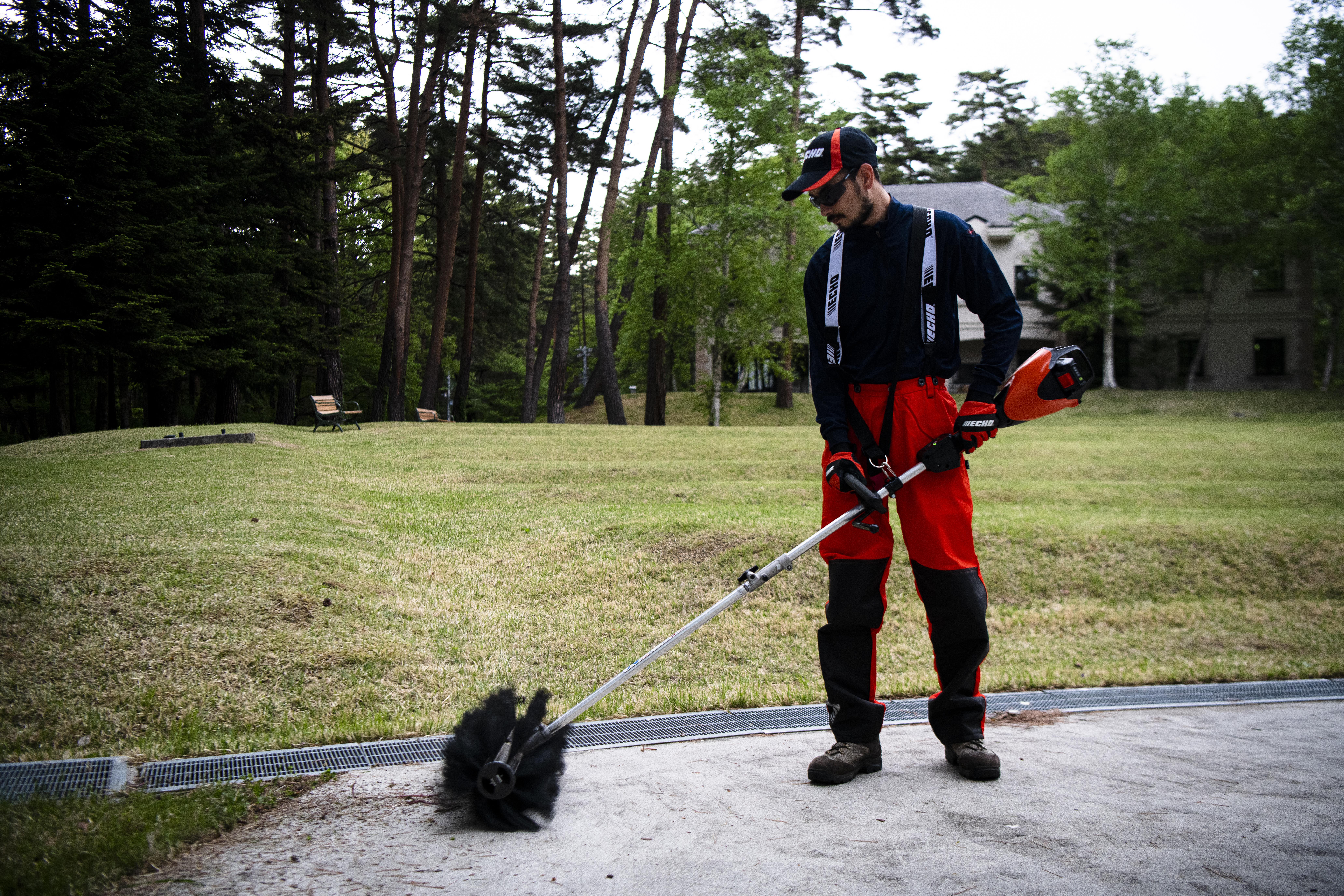 Grâce aux brosses rotatives, la saleté, les feuilles et les débris sont rassemblés rapidement et efficacement, ce qui facilite grandement leur ramassage. Cet accouplement est particulièrement utile en automne et au printemps, lorsque les feuilles et résidus s’accumulent en plus grande quantité.
