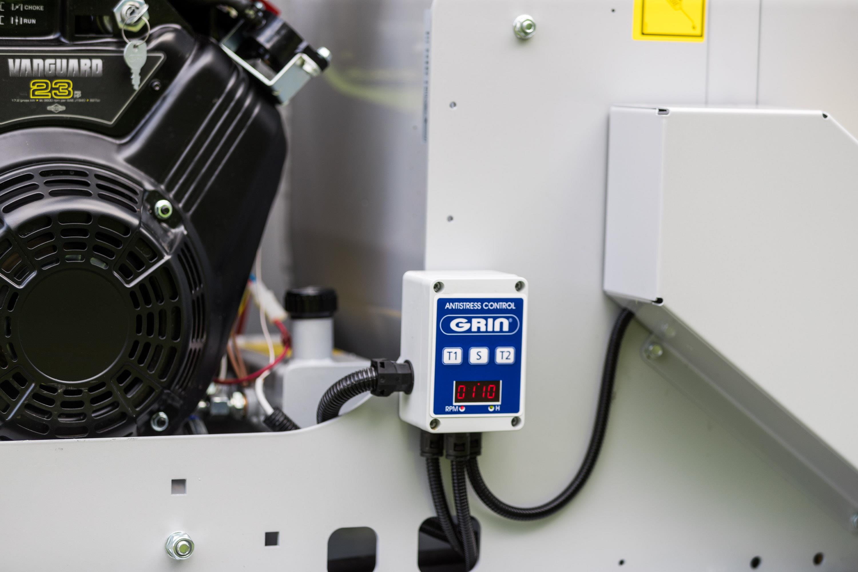 Il est équipé par un puissant moteur bicylindre Briggs&Stratton Vanguard 23 CV avec démarrage électrique.