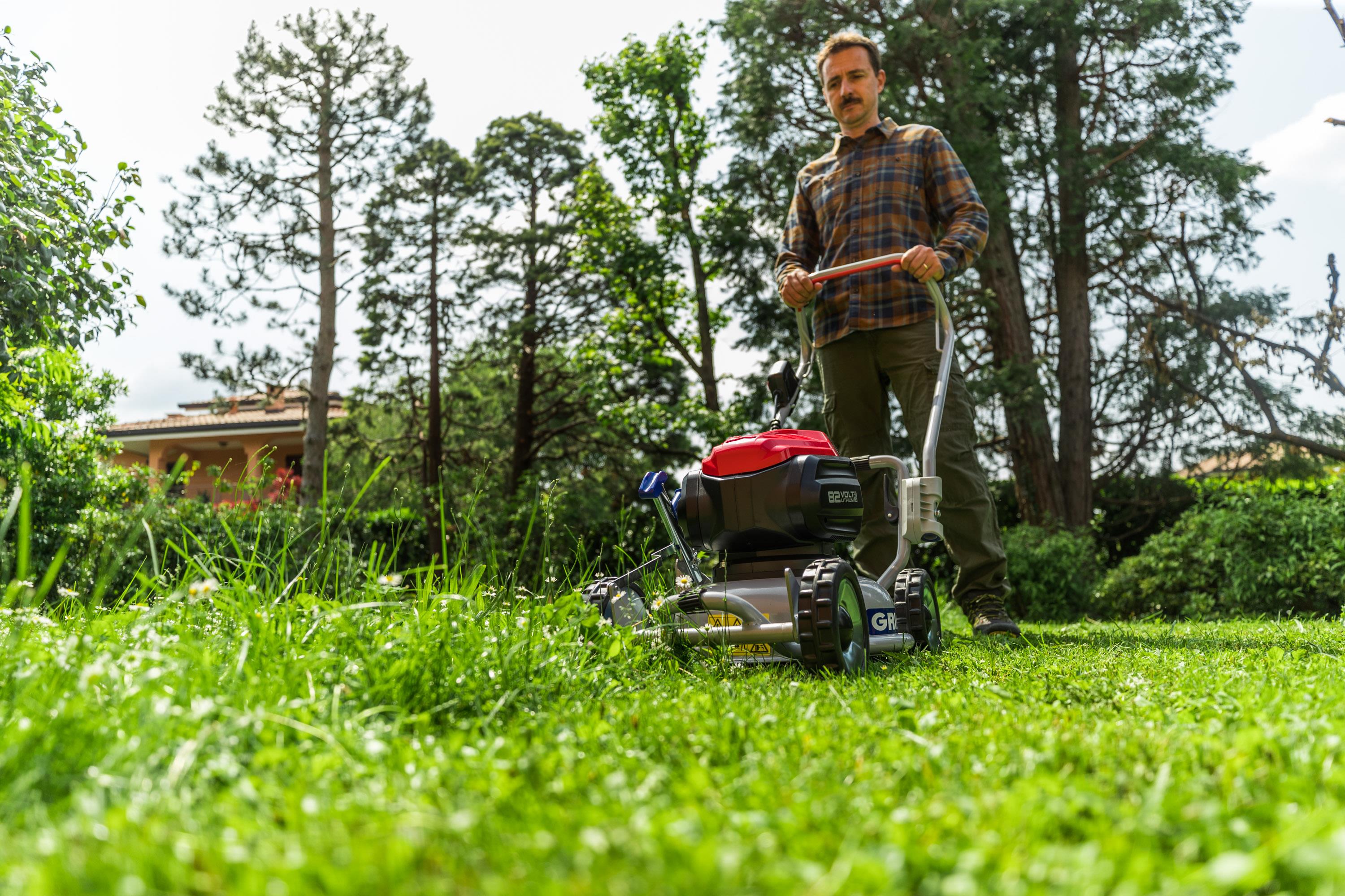 GRIN Tondeuse à batterie 46cm avec traction de roues incl. CRAMER 82V batterie 8Ah et chargeur