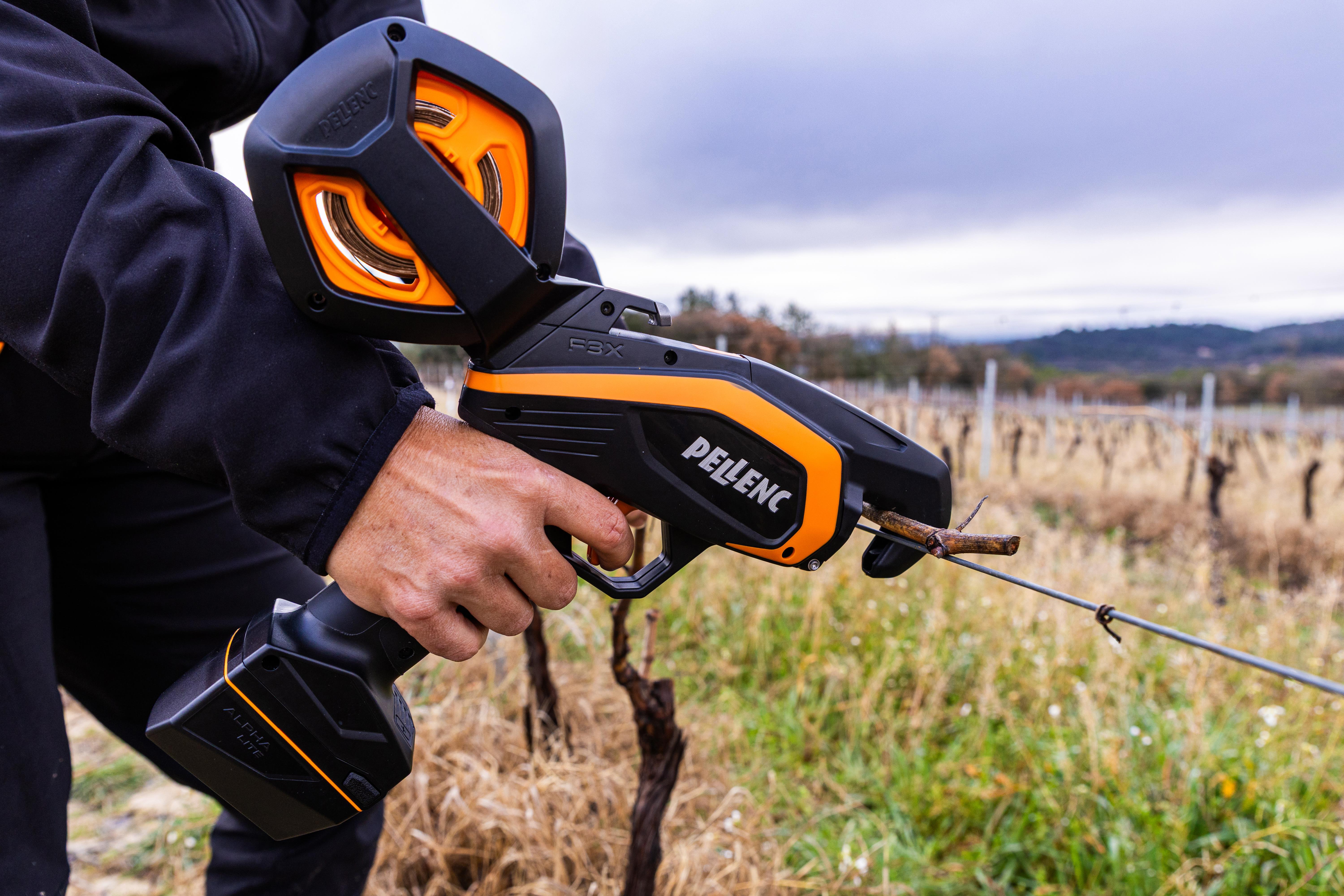 Le F3X V25 est le nouvel appareil de liage électrique de Pellenc, spécialement conçu pour une utilisation professionnelle dans la viticulture et l'arboriculture. Il a été conçu pour offrir une liberté de mouvement maximale, une utilisation intuitive et une efficacité optimale. Que ce soit pour les vignes, les arbres fruitiers ou d'autres cultures, le V25 séduit par sa légèreté, sa rapidité et sa précision.