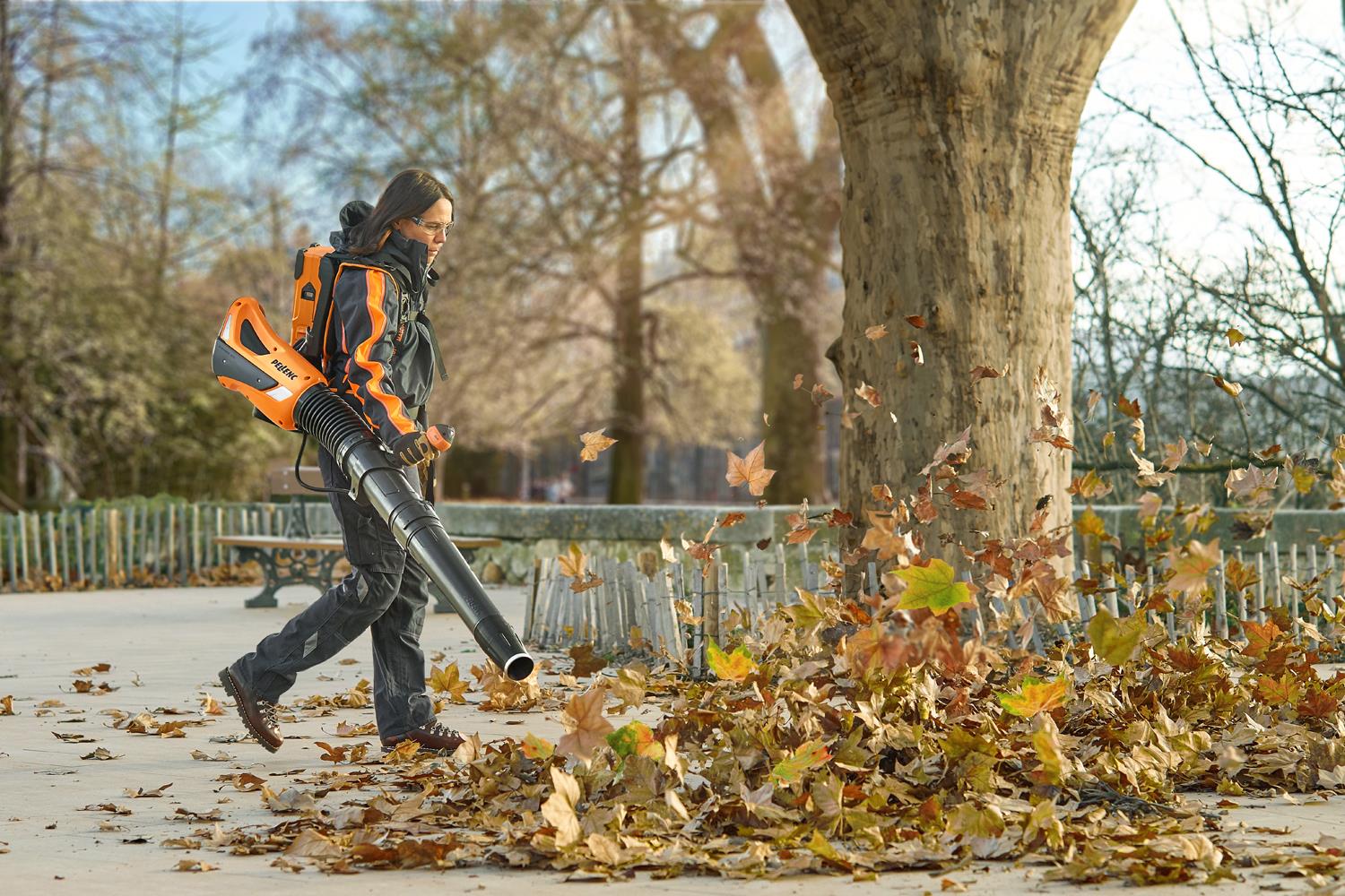 Le AIRION BACKPACK, silencieux et sans émissions, est idéal pour le travail en ville ou dans les espaces verts. Cet appareil offre un nettoyage efficace et productif sans déranger les résidents.