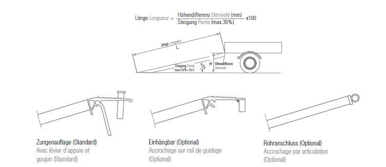 Les rampes AOS fabriquées en alliage d'aluminium sont très résistantes aux intempéries, elles ont été développées pour garantir une capacité de charge élevée, tout en gardant une hauteur de construction compacte avec un poids minimal. Une structure autoportante, composée d’un profil trapézoïdal situé sous la surface de